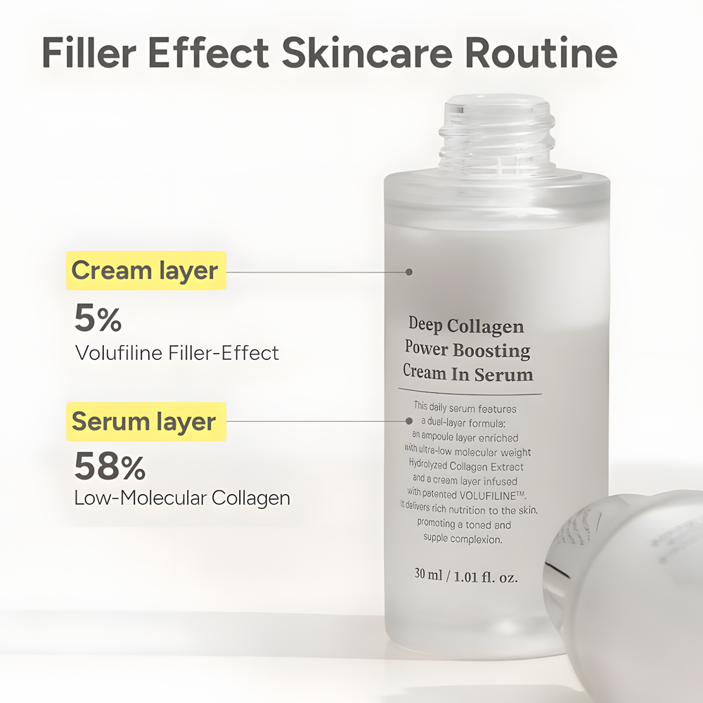 Key ingredients include ultra-low molecular weight collagen for deep absorption, niacinamide for improved tone and hydration, and Volufiline to enhance skin plumpness. Together, they work harmoniously to rejuvenate your skin!